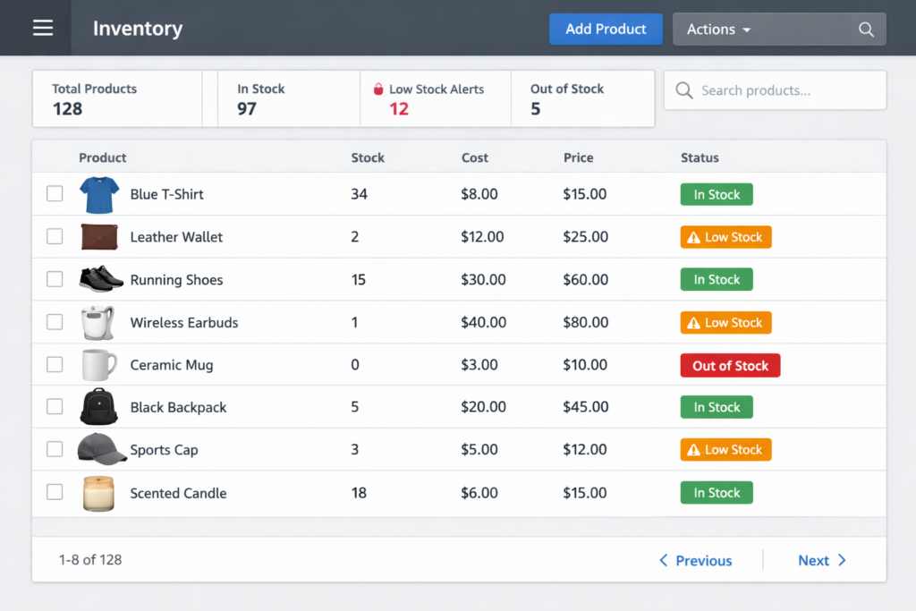 商品が売れるたびに、自動的に在庫数が減っていくため、常に正確な在庫状況を把握できます。在庫が少なくなるとアラートを出す設定も可能なので、品切れによる販売機会の損失を防ぐことができます。これはまるで「見えない倉庫番」が常に在庫をチェックしてくれているようです。